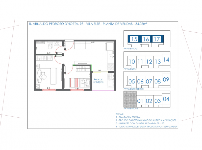 DESCRITIVO DOS APARTAMENTOS UNIDADE 16- 50 METROS - COM GARDEN - 2° Andar- ( Imagens Ilustrativas)
