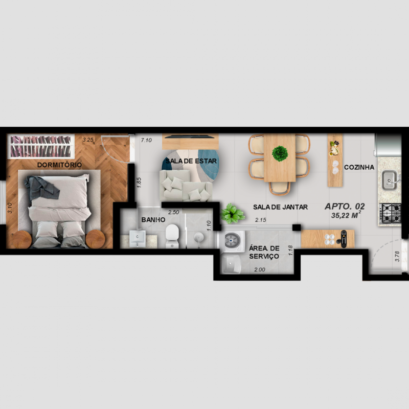 DESCRITIVO DOS APARTAMENTOS UNIDADE 35,22 METROS - 2°Andar - 2 DORMITÓRIOS