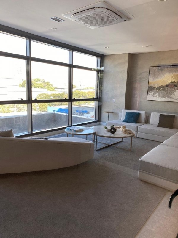 Com uma sacada ampla , com uma vista ampla e linda, trazendo luz natural e ventilação ao ambiente .